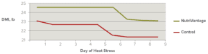 Nutrition Notes A Review Of Feedlot Data From Cattle Fed NutriVantage (2007-2014)* We have had many questions regarding the use of NutriVantage for beef in feedlot cattle and the data that were generated from incoming calves through heat-stressed feedlot cattle. The following summary provides the data accumulated from KNG’s PDC as well as field trials conducted from Kentucky to northwest Iowa. In 2007, Kent researchers started a study (KFDLT 07M 188S, Table 1) using highly stressed 500-lb steer calves from Kentucky sale barns to evaluate NutriVantage for beef (a synergistic blend of natural ingredients, organic acids, vitamins and complexed trace minerals) in diets fed to incoming cattle. Calves fed NutriVantage for beef ate 13.3% more dry matter and had 18.2% more weight gain than control calves. The control diet can be described as the best starter program that KNG had developed to date. The health data from this animal set demonstrated that NutriVantage for beef reduces morbidity substantially and mortality by 75%. Table 1: Effect of MFG 150 on Incoming Calves Treatment MFG ADG, lb DMI, lb F/G Deaths 1 0 2.09 13.43a 6.77 4 2 x 2.47 15.22b 6.16 1 3 2x 2.27 14.40ab 6.52 5 ab Treatment means within the same parameter with unlike superscripts are different (P < .05) That same year (KFDLT 07M 188, Table 2) KNG staff found that finishing cattle benefitted from consuming NutriVantage for beef. Average daily gains were stimulated in a linear fashion (P=.14) as the level of NutriVantage for beef increased as did dry matter intakes (linear effect P<.01). It was the intake effect that increased gains. Table 2: Finishing Steer Performance as Affected by Dietary MFG 150 Concentrates Treatment MFG ADG, Lbd DMI, Lbc F/G 1 0 3.49 18.17a 5.22 2 x 3.52 19.02ab 5.42 3 2x 3.65 19.38b 5.33 ab(P < .05) cLinear effect (P < .01) dLinear effect (P = .14) As the two aforementioned trials were being concluded, field trials were being started in Kentucky with a very large back grounding company who purchased high risk calves, straightened them out health and performance wise and re-sold them as feeders. The initial study (KFT 08FR 1, Table 3) found that in over 600 calves, those fed NutriVantage for beef ate 13.8% more dry matter and gained 15.6% more body weight than control steers. Health records from this group of cattle also revealed that calves fed NV had significantly less 2, 3 and 4th pulls and 66% less deaths. A second trial at this facility (KFT 09FR 2, Table 4) that was supposed to last 40 days was shortened to 14 days as the control group was a wreck and the owners placed them all on NV. By day 14, the NV group showed a 63% reduction in death loss and about a 50% reduction in re-treats. Table 3: Field Evaluation of NutriVantage for beef (2008) Treatment NutriVantage ADG, lb DMI, lb F/G Deads # Rebound Plus - 1.73 11.59 6.70 12 Rebound Plus + 2.00 13.19 6.60 6 Table 4: Field Trial 2 (2oo9) Treatment NutriVantage Cattle Treated* Once Cattle Treated* 2x Cattle Treated* Chronics # Deaths* 1 No 149 65 38 33 2 Yes 118 32 14 12 *Out of 318 head/treatment In Minnesota, dairy beef is a major contributor to the feedlot cattle fed out for slaughter. The calves are generally purchased shortly after birth and may go through a few owners before being harvested. Established dairy beef feed programs are capable of supporting excellent performance if calves are healthy when they are received. This health aspect in a lot of feeding situations with Holsteins is a problem as sickness and death can plague a producer. In 2007 (KDB 07MN 1), a producer in Minnesota initiated a trial at his location as he had issues with performance and death loss. One hundred and seventy-eight 200# Holstein calves were assigned to two treatments based on body weight and fed to 425 lb. Both sets of calves were fed a corn/pellet program and the only difference was the addition of NV to the test group (Table 5). Calves fed NutriVantage for beef gained faster (12.4%) and consumed more dry matter (6.3%) than control calves. Feed efficiency tended to be improved. Death loss was reduced by 69.6% in the NutriVantage for beef group compared to the calves not fed NutriVantage for beef. Table 5: Effect of NutriVantage for beef Technology on Lightweight Holstein Steers (200-425 Lb) Treatment Description ADG, Lb DMI, Lb F/G Death Loss, % 1 Precision Dairy Beef* 2.67 9.36 3.50 7.9 2 PDB & NutriVantage 3.00 9.95 3.32 2.2 *PDB Kent researchers again evaluated the use of NutriVantage for beef in diets for finishing cattle (KFLT 09M 198GF, Table 6) where the NutriVantage for beef level and feeding methods were studied. It was found that providing cattle NutriVantage for beef via a complete feed or so many pounds per ton of complete feed and mixed in a TMR wagon was superior to providing it via a supplement or balancer. In determining the correct concentration of NutriVantage for beef to fed, we found that there is a peak amount (ppm) where intakes and thus gains were maximized. More or less than this amount curtailed cattle response to NutriVantage for beef. It should be noted that performance, regardless of NutriVantage for beef concentration, never fell below that observed in control cattle. In addition to revealing feeding method responses, the use of NutriVantage for beef in finishing cattle diets the last 28 days again provided more profit for the producer by producing a heavier animal upon slaughter. Table 6: Effect of NV Feeding Method on Feedlot Performance Treatment Description Days ADG, Lb DMI, Lb F/G 1 Control, No NV 138-166 3.54ab 23.12 6.78cd 2 NV, 25#/Ton TMR* 138-166 4.04b 23.54 5.93d 3 NV Equiv. in Balancer** 138-166 3.34d 23.52 6.98c 1 NV 16.7#/Ton TMR* 138-166 3.65ab 23.08 6.56cd 1 Control, No NV 0-166 3.48c 20.89cd 6.08de 2 NV, 25#/Ton TMR* 0-166 3.57c 20.74d 5.82e 3 NV Equiv. in Balancer** 0-166 3.32d 20.94cd 6.32f 4 NV 16.7#/Ton TMR* 0-166 3.47cd 21.39c 6.18df ab(P < .05) cdef(P < .10) LDS means *Concentration per ton of complete feed *