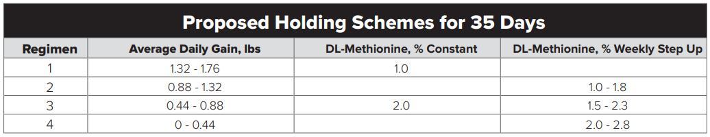 Nutrition Notes Use Of DL-Methionine In Holding Late-Finishing Pigs By James Smith, Ph.D., Senior Technical Swine Nutritionist Michael Edmonds, Ph.D., Vice President, Swine and Poultry Nutrition In the event of any market suspension that requires slowing the growth of finishing pigs, pork producers need dependable and economical diets that can reduce growth while maintaining carcass quality. Studies conducted at the Kent Research Farm have resulted in the development of four feeding regimens to reduce feed intakes over a 35 day period through the use of various levels of supplemental Methionine. Regimen 1 – To achieve a daily gain of about 1.5 lb/day, add Methionine at 1% of the diet. Regimen 2 – To achieve a daily gain of about 1 lb/day, add Methionine at 1% of the diet during week 1. Then add 1.2% Methionine during week 2; 1.4% Methionine during week 3, 1.6% Methionine during week 4 and 1.8% Methionine during week 5. Regimen 3 – To achieve a daily gain of about 0.6 lb/day, add Methionine at 2% of the diet. Alternatively, the addition of Methionine at 1.5% of the diet during week 1 followed by 1.7, 1.9, 2.1 and 2.3% Methionine during weeks 2-5, respectively. Regimen 4 – To achieve none or very little gain, add Methionine at 2% of the diet during week 1. Then add 2.2% Methionine during week 2; 2.4% Methionine during week 3, 2.6% Methionine during week 4 and 2.8% Methionine during week 5. Literature CitedEdmonds, M. S., and J. W. Smith II. 2021. Amino acidimbalance with excess methionine in late-finishing pigs: effects on performance and carcass quality Transl. Anim. Sci. 5:1-11. doi:10.1093/tas/txab197. Download PDF Facebook Twitter LinkedIn Related Nutrition Notes Effect of NutriVantage® and/or Chromax in Grow-Finish Pigs Developing products and feed programs to help producers raise pork more efficiently to feed a growing population is an ongoing effort at the Kent Research Farm. NutriVantage® Nutrition Optimizer® for… Read More Supplemental Chromium Sources in Grown-Finish Pigs Developing products and feed programs, to help producers raise pork more efficiently, is an ongoing effort at the Kent Research Farm. Chromium is a trace mineral that helps with the… Read More Amino Acid Imbalance with Excess Methionine in Late-Finishing Pigs: Effects on Performance and Carcass Quality The outbreak of the Covid-19 Pandemic in the spring of 2020, resulted in the shutdown of numerous pork harvest facilities across the country. This resulted in many complications in the… Read More Want to learn more from KNG research? Give us your email address to be notified when we publish new Nutrition Notes articles.
