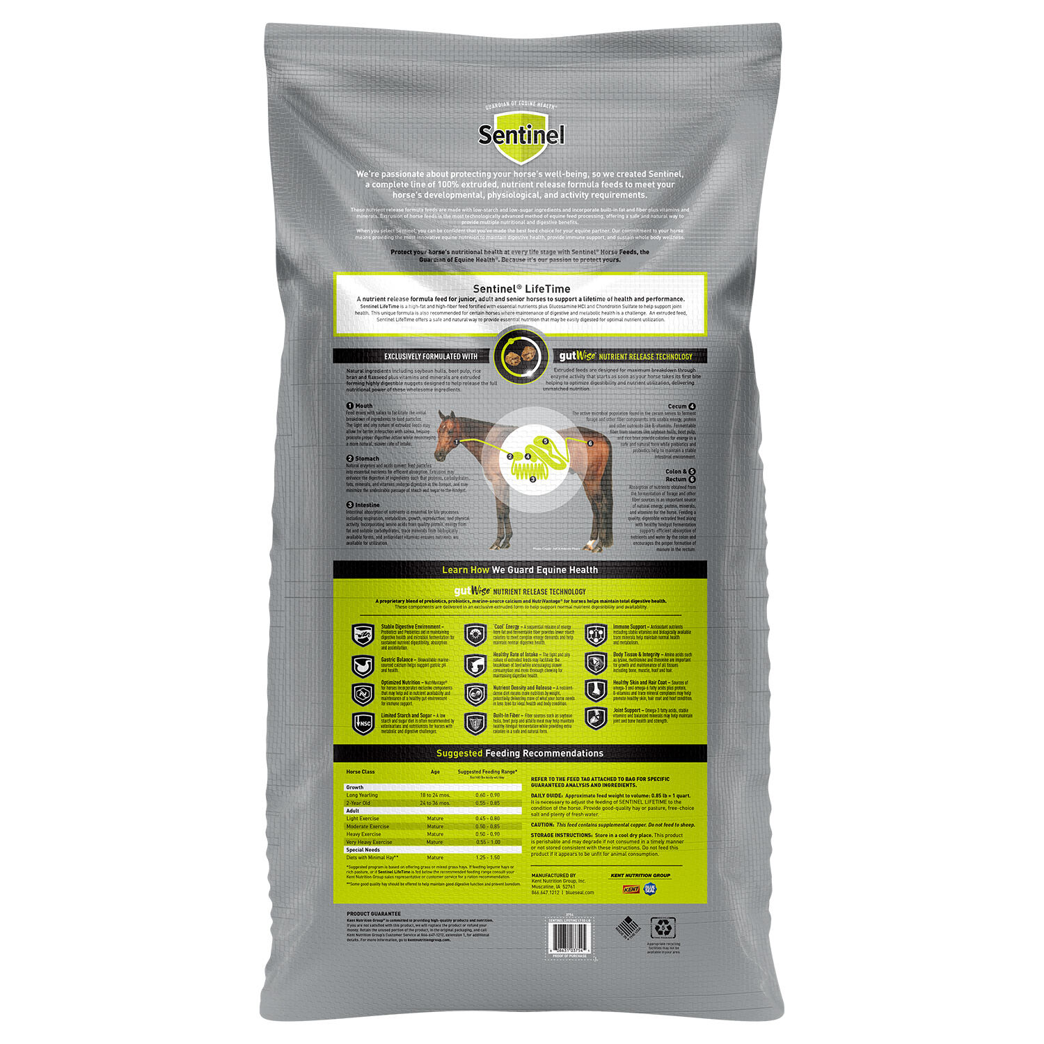 A nutrient release formula feed for junior, adult and senior horses to support a lifetime of health and- performance. Sentinel® LifeTime is a high-fat and high-fiber feed fortified with essential nutrients plus Glucosamine HCl and Chondroitin Sulfate to help support joint health. This unique formula is also recommended for certain horses where maintenance of digestive and metabolic health is a challenge. An extruded feed, Sentinel LifeTime offers a safe and natural way to provide essential nutrition that may be easily digested for optimal nutrient utilization.