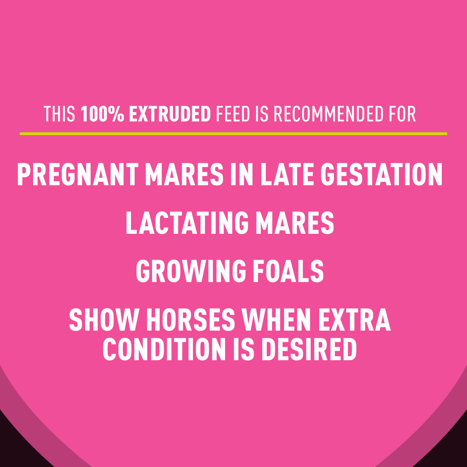 A nutrient release formula feed for growing foals and lactating mares. Sentinel® Safe Start is a highly fortified high-protein and high-fat feed providing the precise nutrition to support healthy foal growth and milk production and composition in mares. This unique formula is also recommended for show horses where muscle mass, topline and coat condition are desired. An extruded feed, Sentinel Safe Start offers a safe and natural way to provide essential nutrition that may be easily digested for optimal nutrient utilization.